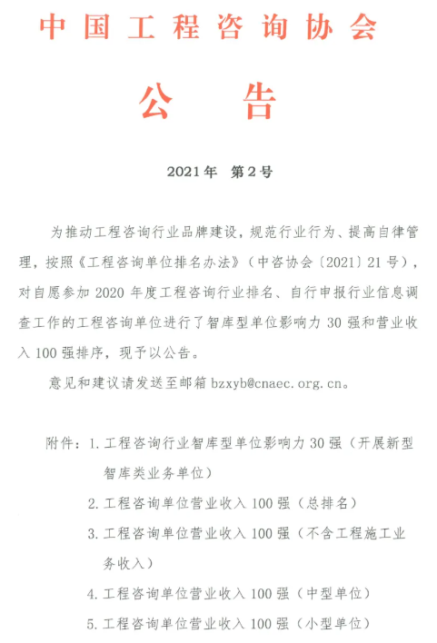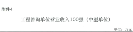 工程咨詢單位營業收入100強(中型單位)
