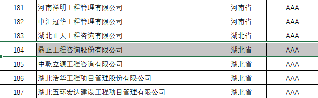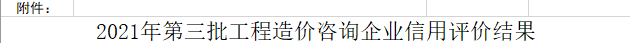 第三批工程造價咨詢企業信用評價結果