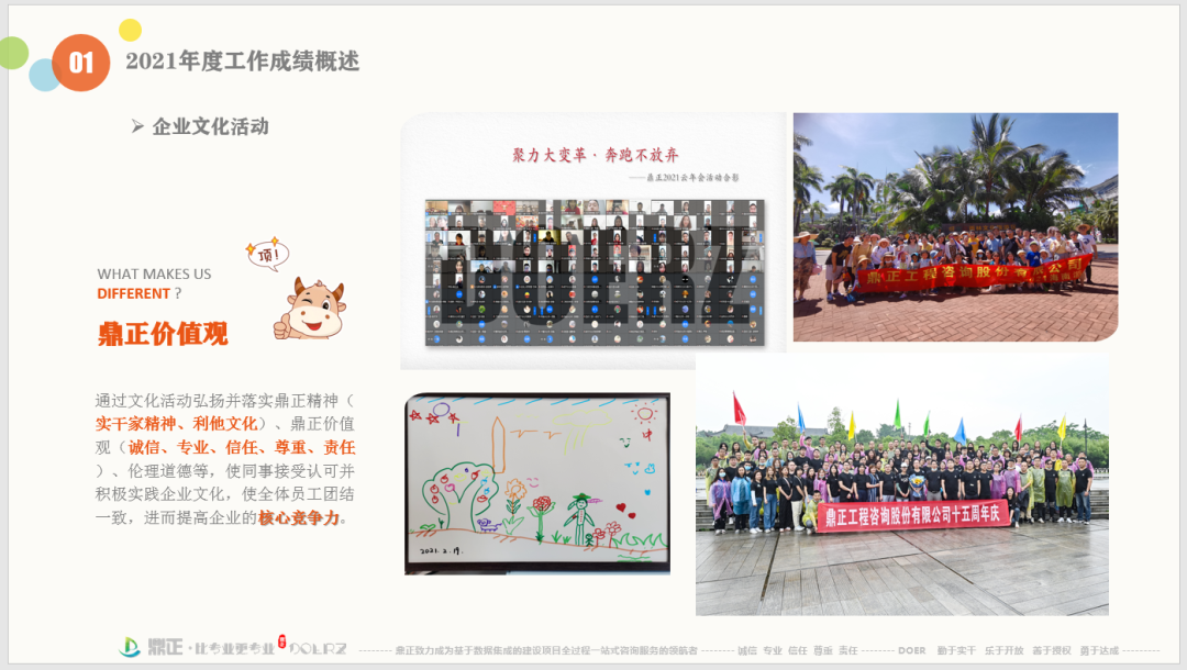 本次年終總結(jié)會(huì)議既是一次回顧過往的總結(jié)大會(huì),也是一次展望未來、再創(chuàng)佳績(jī)的動(dòng)員大會(huì)。感謝全體鼎正人在2021年度的積極付出與努力,望大家繼續(xù)加強(qiáng)自身學(xué)習(xí),提高工作效率,端正工作態(tài)度,提升服務(wù)質(zhì)量,全體同仁齊心協(xié)力乘勢(shì)而上,凝聚力量共筑未來,相信明天會(huì)更好!