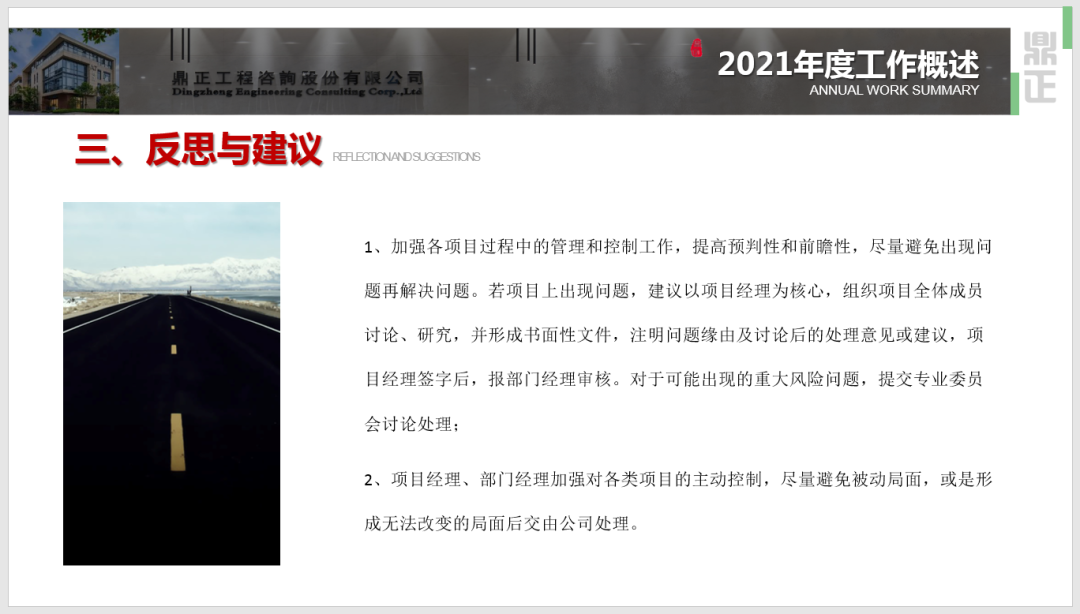 1、工程咨詢事業(yè)部:持續(xù)保持積極向上的態(tài)度,從人才儲(chǔ)備、資質(zhì)資信、技術(shù)沉淀、經(jīng)驗(yàn)積累等方面做了大量工作,為部門“十四五”發(fā)展做了充足的準(zhǔn)備。