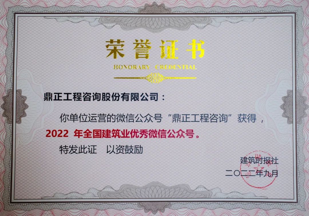 9月25-26日,由建筑時報(bào)社主辦的2022建筑業(yè)微信公眾號運(yùn)維經(jīng)驗(yàn)交流研討會暨全國建筑業(yè)優(yōu)秀公眾號頒獎典禮在武漢舉辦。鼎正官方微信公眾號“鼎正工程咨詢”上榜全國建筑業(yè)優(yōu)秀微信公眾號榜單,榮獲2022年全國建筑業(yè)優(yōu)秀微信公眾號。