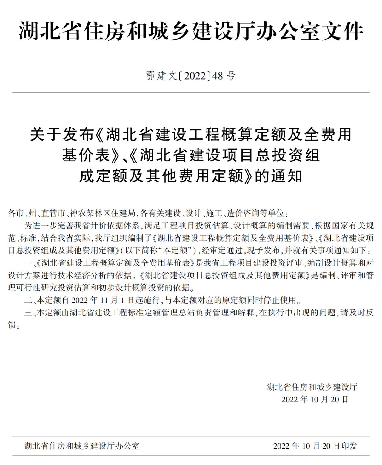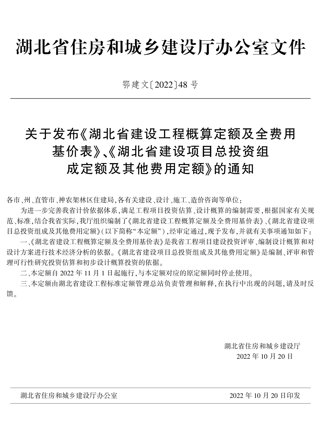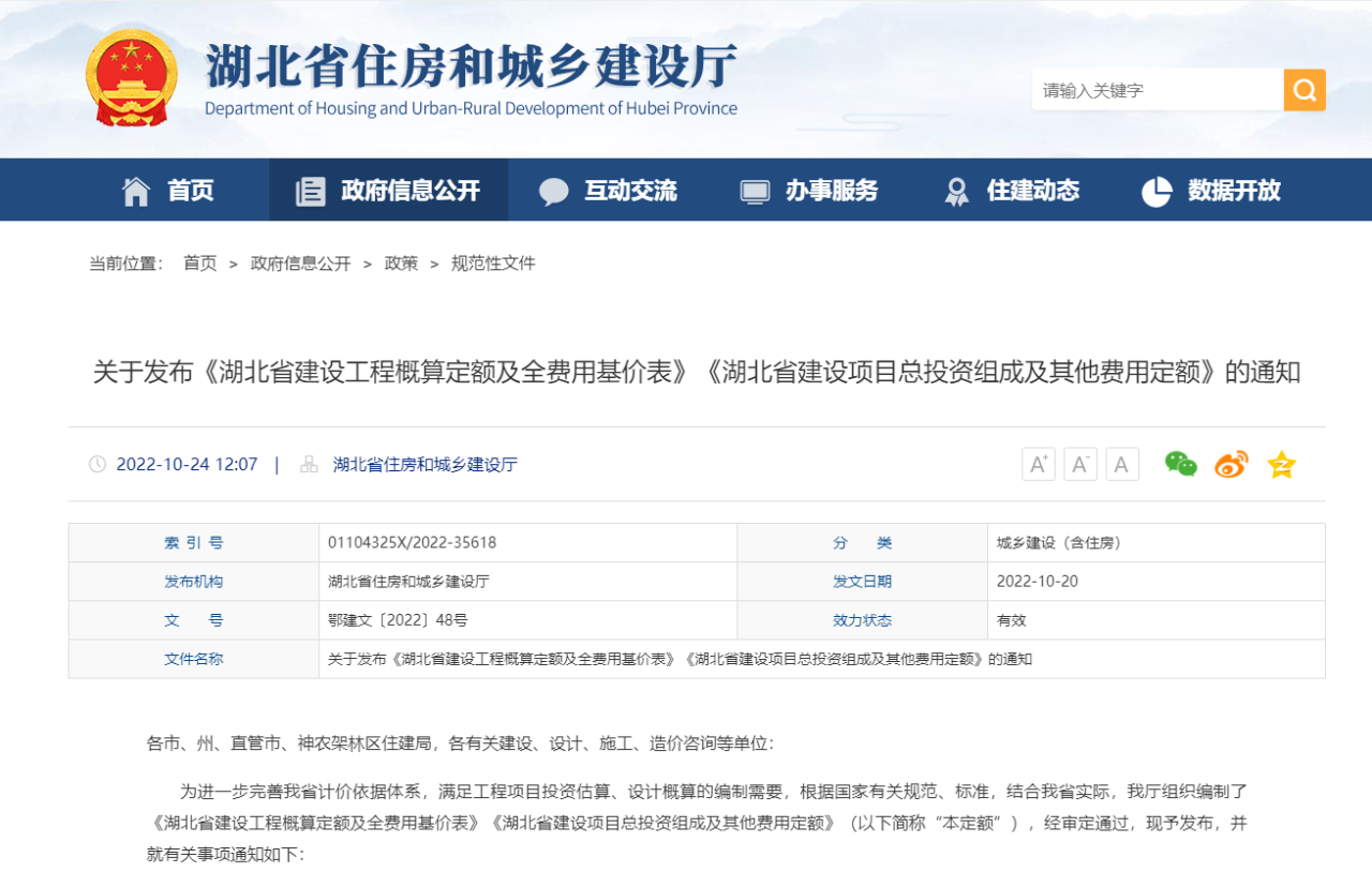 湖北省住建廳發(fā)布《湖北省建設(shè)工程概算定額及全費(fèi)用基價(jià)表》《湖北省建設(shè)項(xiàng)目總投資組成及其他費(fèi)用定額》的通知