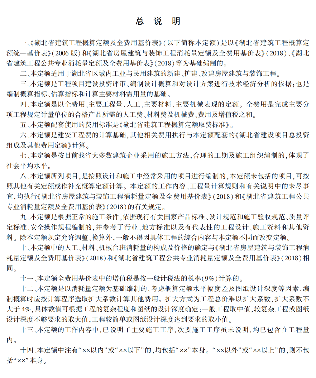 一、《湖北省建設(shè)工程概算定額及全費(fèi)用基價(jià)表》是我省工程項(xiàng)目建設(shè)投資評(píng)審、編制設(shè)計(jì)概算和對(duì)設(shè)計(jì)方案進(jìn)行技術(shù)經(jīng)濟(jì)分析的依據(jù)。《湖北省建設(shè)項(xiàng)目總投資組成及其他費(fèi)用定額》是編制、評(píng)審和管理可行性研究投資估算和初步設(shè)計(jì)概算投資的依據(jù)。