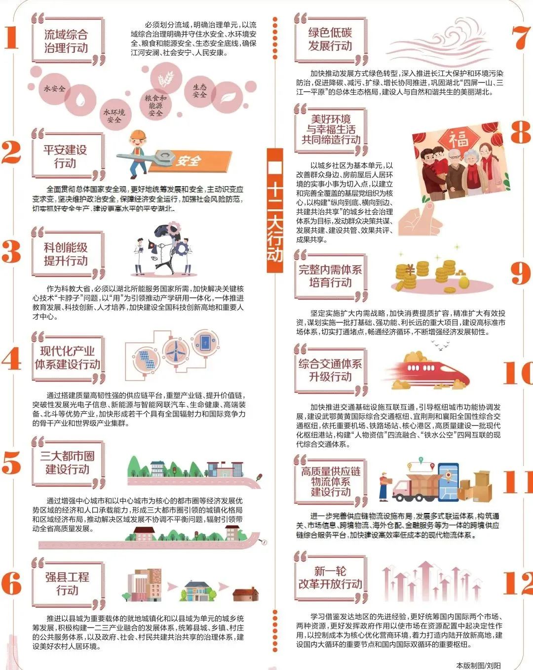 4月18日,湖北省政府新聞辦召開《關于加快建設全國構建新發展格局先行區的實施意見》(以下簡稱《實施意見》)精神解讀系列新聞發布會第一場?!秾嵤┮庖姟饭卜秩蟛糠趾透郊?。第一部分是總體要求,主要闡述文件起草的指導思想、總體思路、基本原則、主要目標;第二部分是主體,圍繞統籌發展和安全、統籌城鄉區域和資源環境、統籌國內國際兩個市場兩種資源,部署“十二大行動”(具體內容見下圖);第三部分從組織領導、完善配套政策、加強考核評估等方面強調了推進實施的保障措施。附件為加快建設全國構建新發展格局先行區的主要指標,設定了71項數據指標。