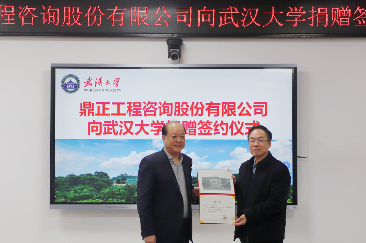 2024年1月10日,鼎正與武漢大學土木建筑工程學院捐贈儀式在武漢大學舉行。鼎正向武大土木建筑工程學院捐贈100萬元,設立“鼎正實習實踐優秀獎學金”,旨在鼓勵青年學子勇于創新、積極實踐,助力武大土木建筑工程學院進行人才培養。
