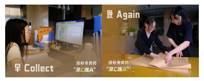 早:晨光微曦,投標人馬不停蹄開啟工作模式。分析招標文件,Collect(收集)業績、證書、資質等原件資料,編制投標方案。核對審查投標內容。