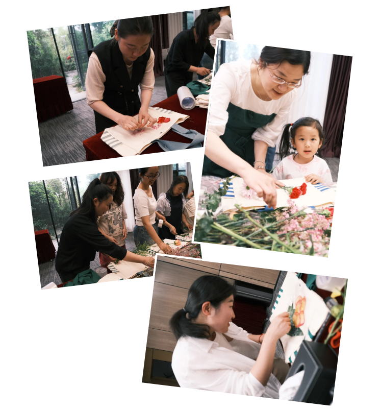 本次母親節(jié)創(chuàng)意植物拓染活動(dòng),不僅是一次藝術(shù)創(chuàng)作體驗(yàn),更是一場(chǎng)心靈的放松之旅,幫助媽媽們釋放日常生活的壓力,“敲敲”找回快樂的自己。
