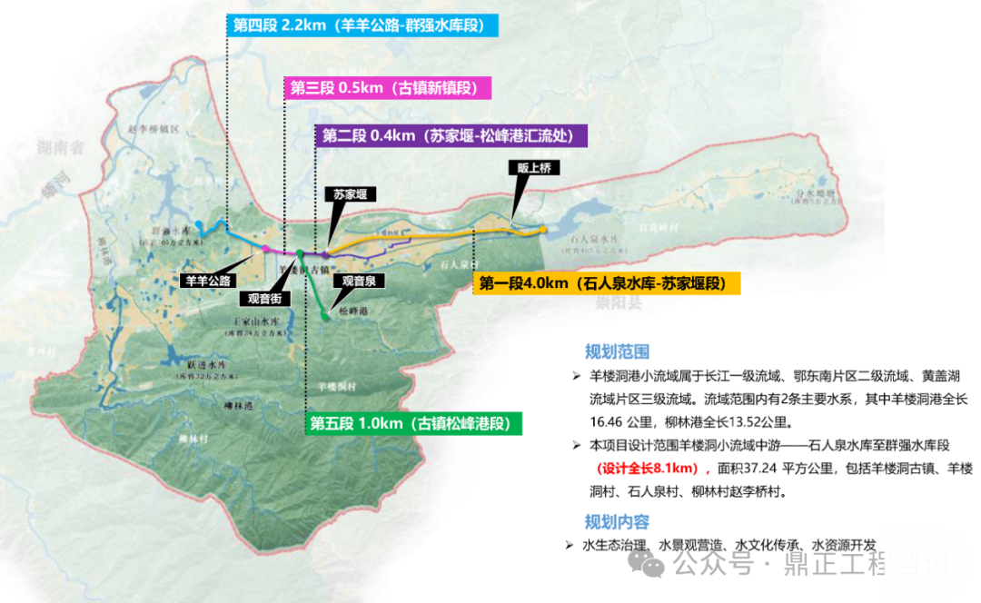2023年8月,《湖北省小流域綜合治理試點工作推進方案》公布,赤壁羊樓洞港小流域綜合治理被列為湖北省5個試點之一。當地政府決定力爭通過一年左右的努力,完成系統性治理。自工作開展以來,赤壁市深入踐行“兩山”理念,聚焦五個切口,開展七大攻堅行動,描繪出一幅生態美、產業強、百姓富的鄉村振興美麗畫卷。鼎正有幸承擔了“七大行動”中的水生態治理和景觀提升設計以及相關技術支持工作。今年初,我司充分發揮專業優勢,組建強有力的專家團隊,迅速開展工作,積極響應,持續推進,目前項目已經取得了階段性成果。