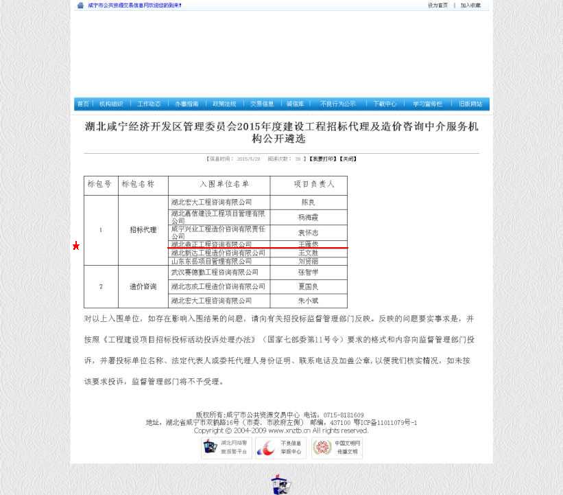 【經(jīng)營成果】我司入圍湖北咸寧經(jīng)濟(jì)開發(fā)區(qū)管理委員會2015年度建設(shè)工程招標(biāo)代理及造價(jià)咨詢中介服務(wù)機(jī)構(gòu)庫招標(biāo)代理單位