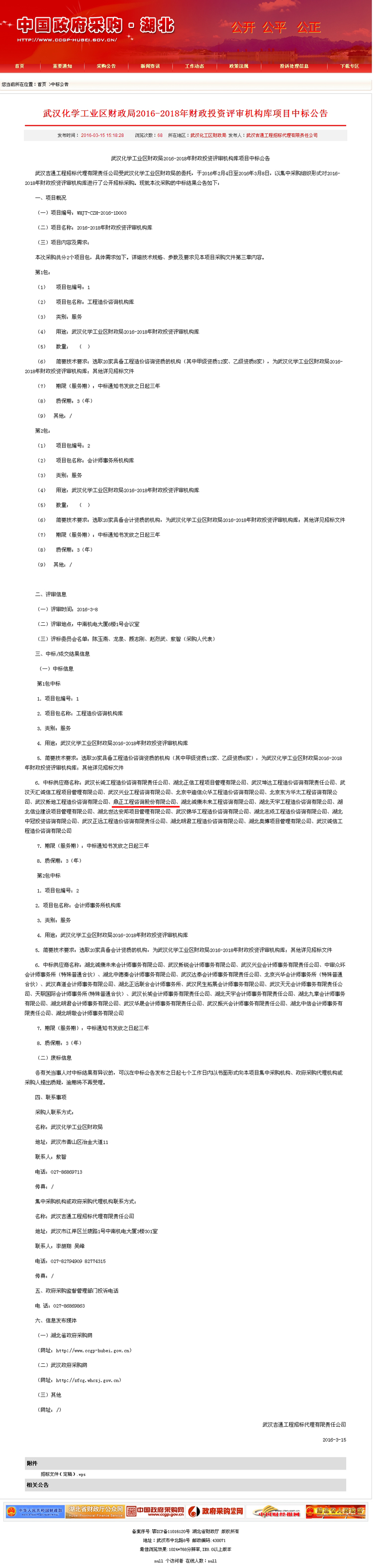 【經(jīng)營成果】我司入圍武漢化學(xué)工業(yè)區(qū)財(cái)政局2016-2018年財(cái)政投資評(píng)審機(jī)構(gòu)庫
