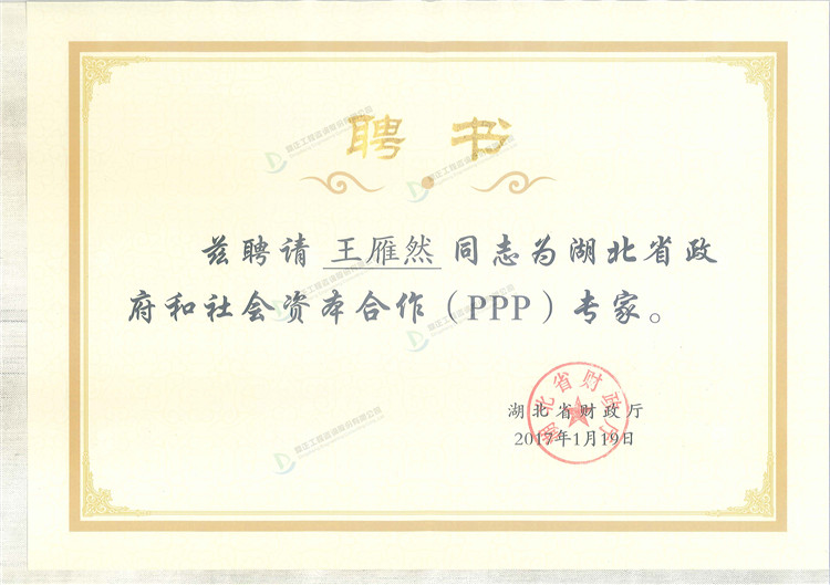 熱烈祝賀我司成功入選湖北省財政廳PPP咨詢服務(wù)機構(gòu)庫。同時祝賀我司王雁然、朱立冬、張宏亮3位同志入選湖北省PPP專家?guī)臁?BR>