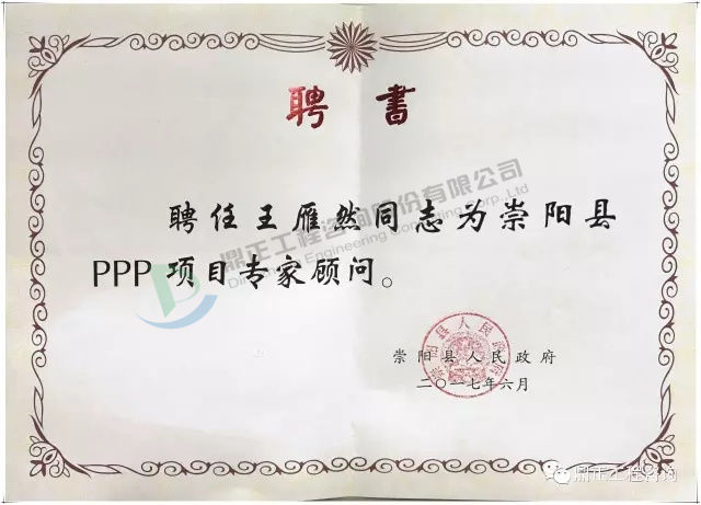 會中,崇陽縣人民政府為王雁然先生頒發崇陽縣PPP項目專家顧問聘書,負責指導崇陽縣PPP工作。