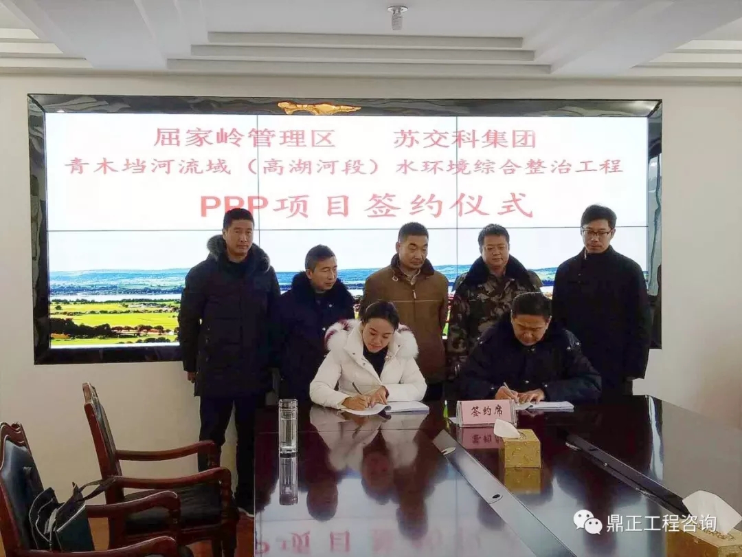 2018年01月05日,由荊門市屈家嶺管理區PPP中心組織荊門市屈家嶺管理區青木垱河流域(高湖河段)水環境綜合整治工程PPP項目合同正式簽約儀式在區管委會會議室舉行。管理區管委會謝主任、管理區金融辦吳主任、管理區環保局趙局長出席了此次簽約儀式。
