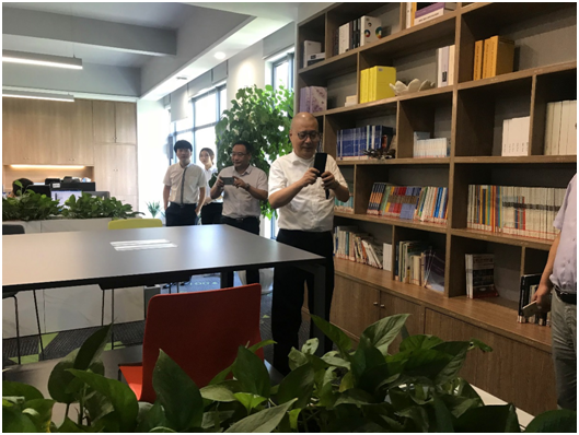 尹教授及各位來賓在我司董事長王雁然先生的陪同下,參觀了我們的辦公樓。當(dāng)尹教授來到綠意盎然、滿室書香的二樓閱覽室時,還拿出手機連連拍照,每一層看完后尹教授贊不絕口,和陪同人員說:“鼎正的環(huán)境無論是硬件設(shè)備設(shè)施,還是裝修風(fēng)格都領(lǐng)先于同行業(yè) ”。