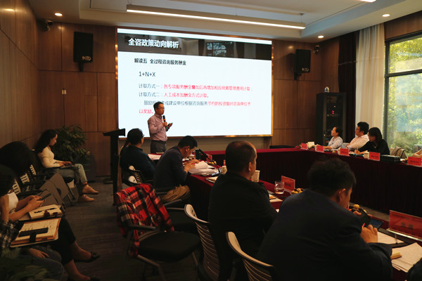 董事長王雁然圍繞“全過程咨詢研究與實務(wù)”的主題進行了演講,從政策動向解析及市場前景預(yù)測、落地實戰(zhàn)解析、典型案例等三個方面內(nèi)容對全過程工程咨詢進行了全面的介紹,分享了鼎正在全過程工程咨詢實踐中取得的業(yè)績成果。