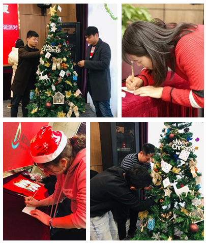 平安夜,行政人事部的同事們化身“圣誕老人”,貼心的為每一位同事準備了平安果;由鼎正大家庭共同裝飾的圣誕樹掛滿了大家親手寫的祝福卡片,為圣誕節(jié)的到來更添一份濃濃的節(jié)日色彩。
